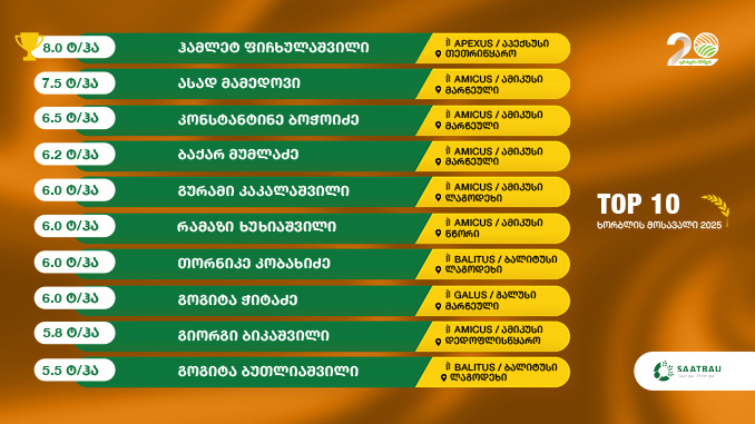 ტოპ 10 ქართველი ფერმერი, რომლებმაც 2025 წელს ხორბლის ყველაზე მაღალი მოსავალი მოიყვანეს
